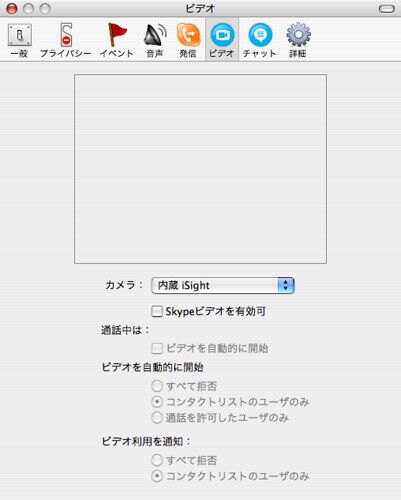 ビデオ機能がついたSkypeがMacOS Xでもリリースされた。早速インストール。 Windowsとのビデオ通話も問題なし。